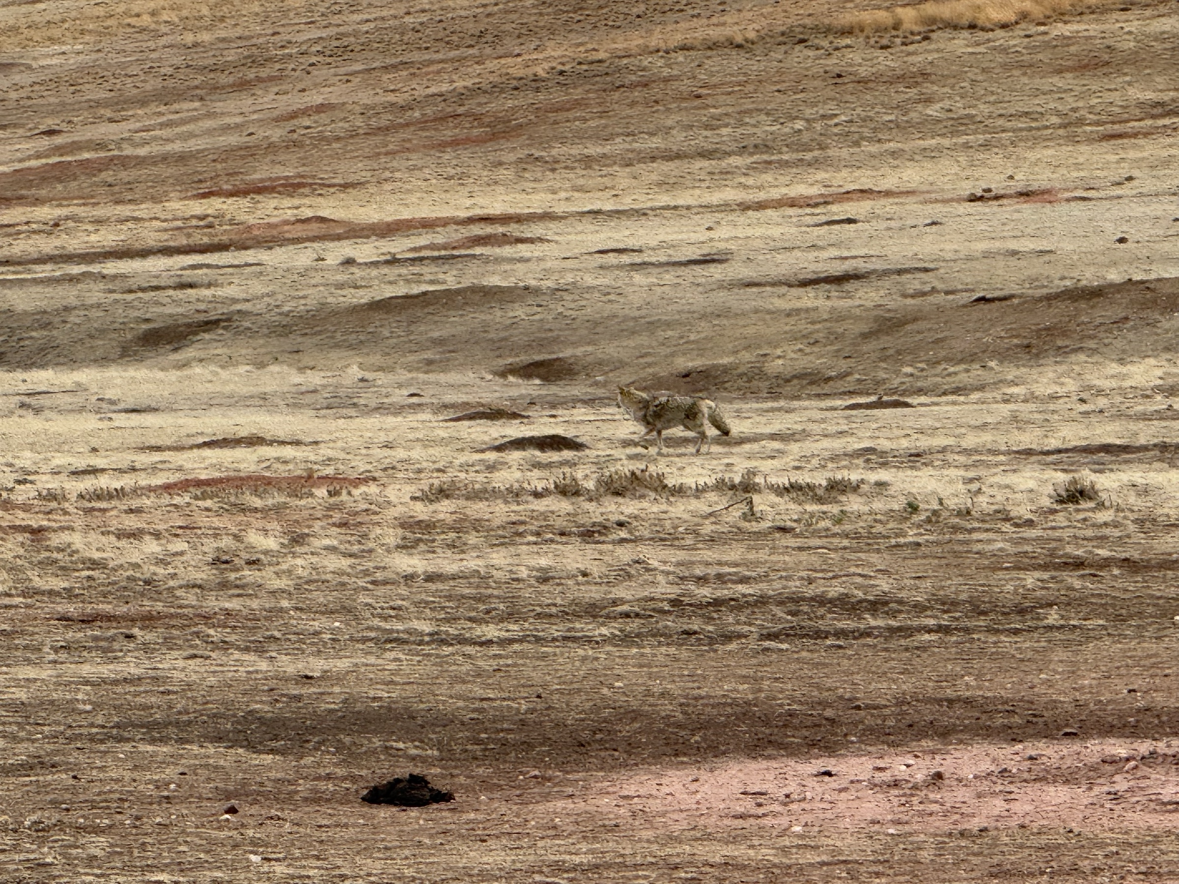 Our drive south on SD-79 took us past more bison alongside the road — a surprise, since we'd thought we'd spent our wildlife currency at Custer State Park — and one coyote that Edrik spotted before any of the rest of us did. Wyoming was waiting again. But first: a stop we hadn't planned.