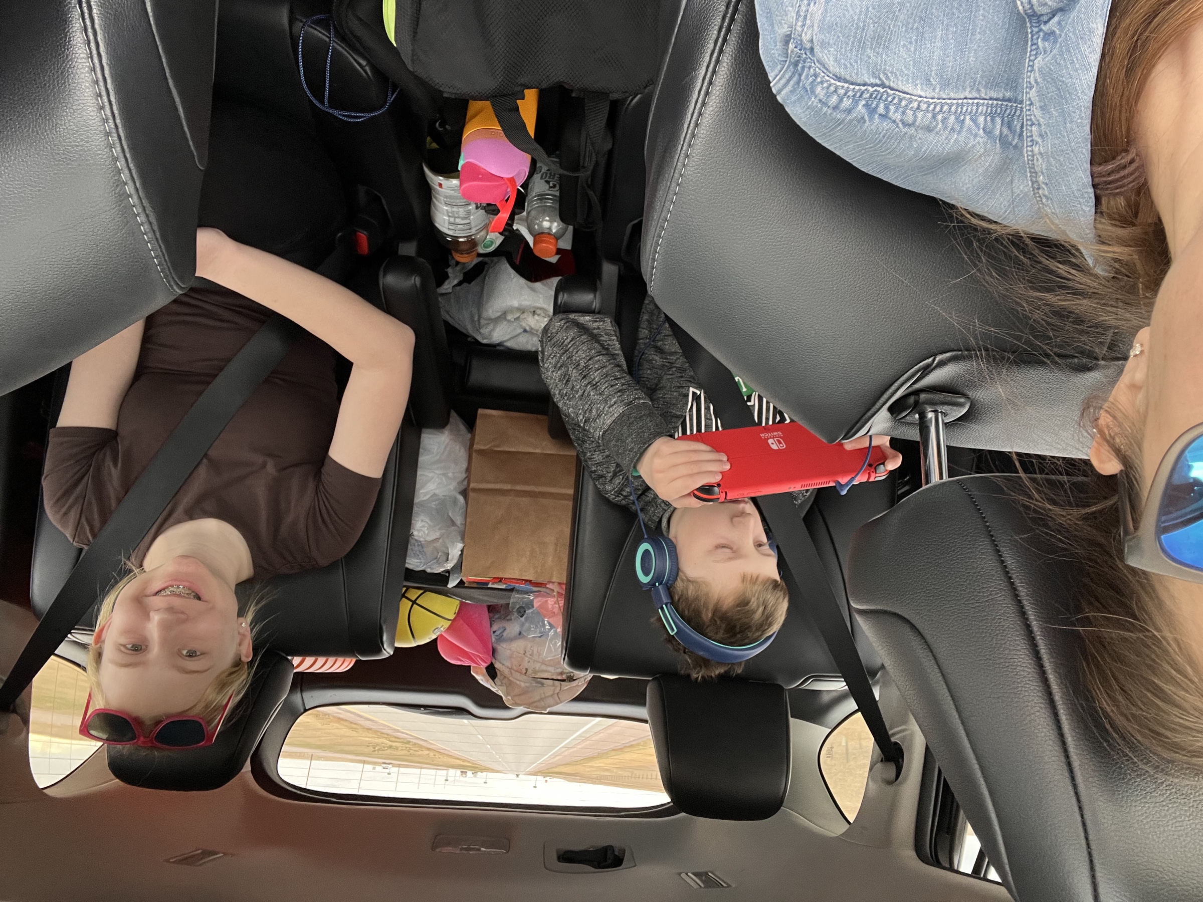 From Wind Cave we picked up a quick gas-and-snacks stop at Coffee Cup #9 in Hot Springs and then settled in for the long drive west: Lusk, then Torrington (where Edrik and I grabbed McDonald's; the girls had food in the car), and on across the Wyoming open country toward Cheyenne. Sierra used the drive to chip away at schoolwork. Edrik played games on the Switch. The hours moved.