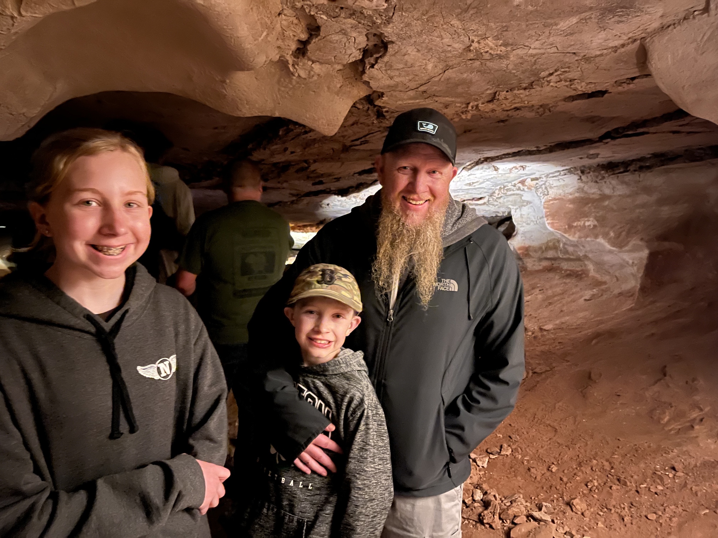 The tour itself was something. The cave is famous for its boxwork — thin calcite fins that grow in honeycomb patterns on the ceilings, the densest concentrations of which are found here. (Wind Cave became the United States' first cave-as-national-park, established by Theodore Roosevelt in 1903, in part because of those formations.) The temperature underground sits at a steady 53°F year-round, which is a relief after a hot prairie morning above. The kids stayed engaged the whole way. The world above stopped existing for a while; what mattered, for ninety minutes, was where the next chamber opened and what the guide was about to say.